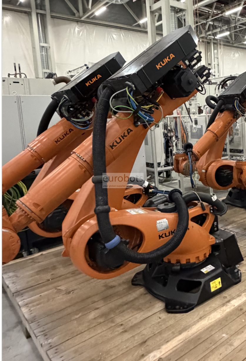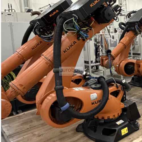 Промисловий робот KR150 R3700K Шестиосна полиця. Це швидкий і точний робот із вантажопідйомністю 150 мм і діапазоном рук 3700 мм, має точність повторення менше ± 0,06 мм. Підходить для загального транспортування, дугового зварювання та механічної обробки, які потребують коротких циклів часу.