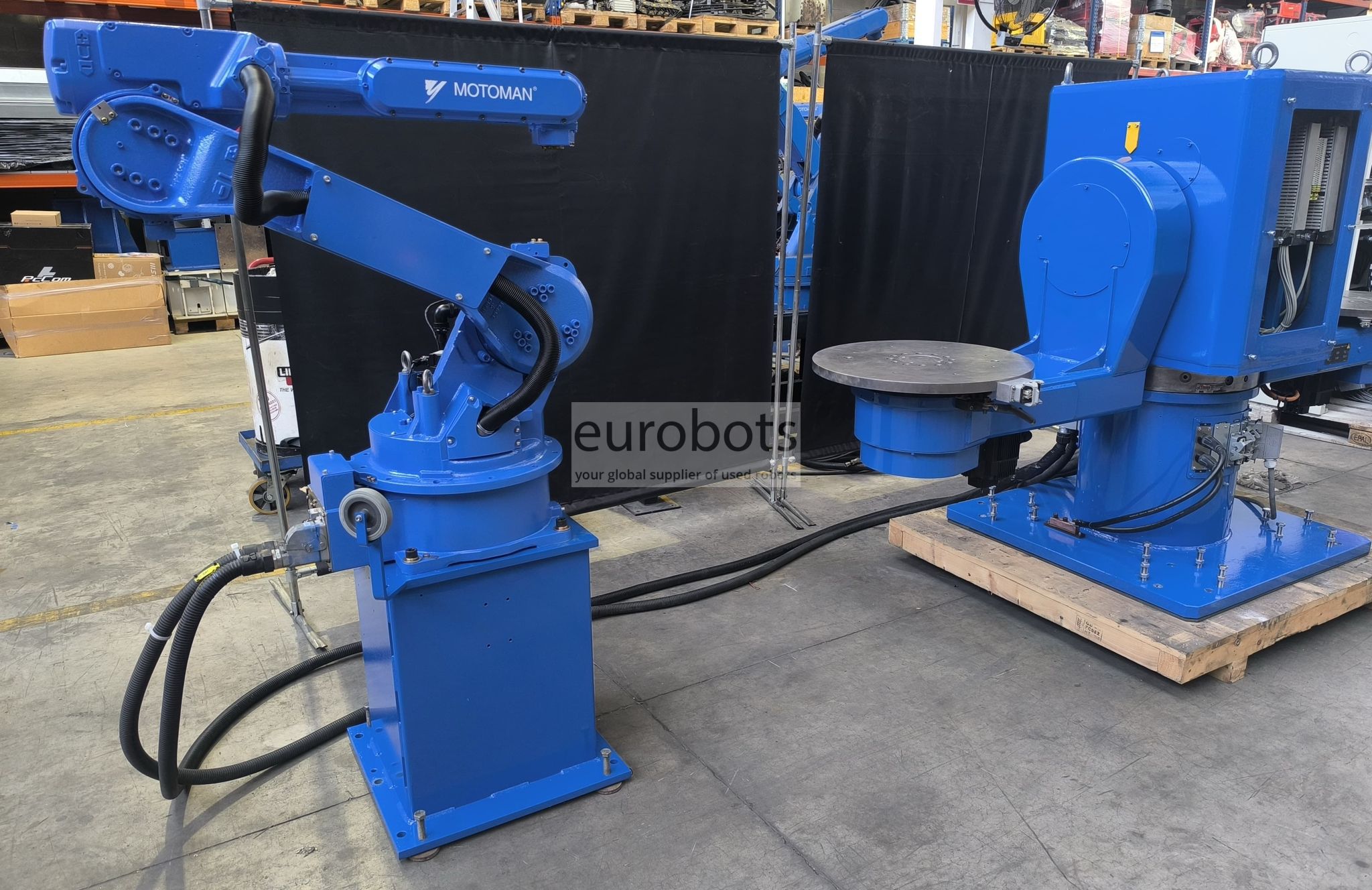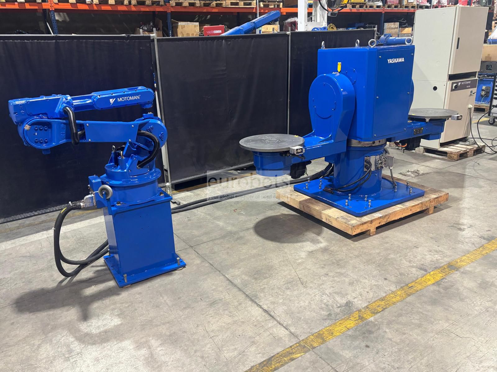 This is system wiht a double L shape tilting positioner from Motoman-Yaskawa. Its load capacity is 500 kg x side.